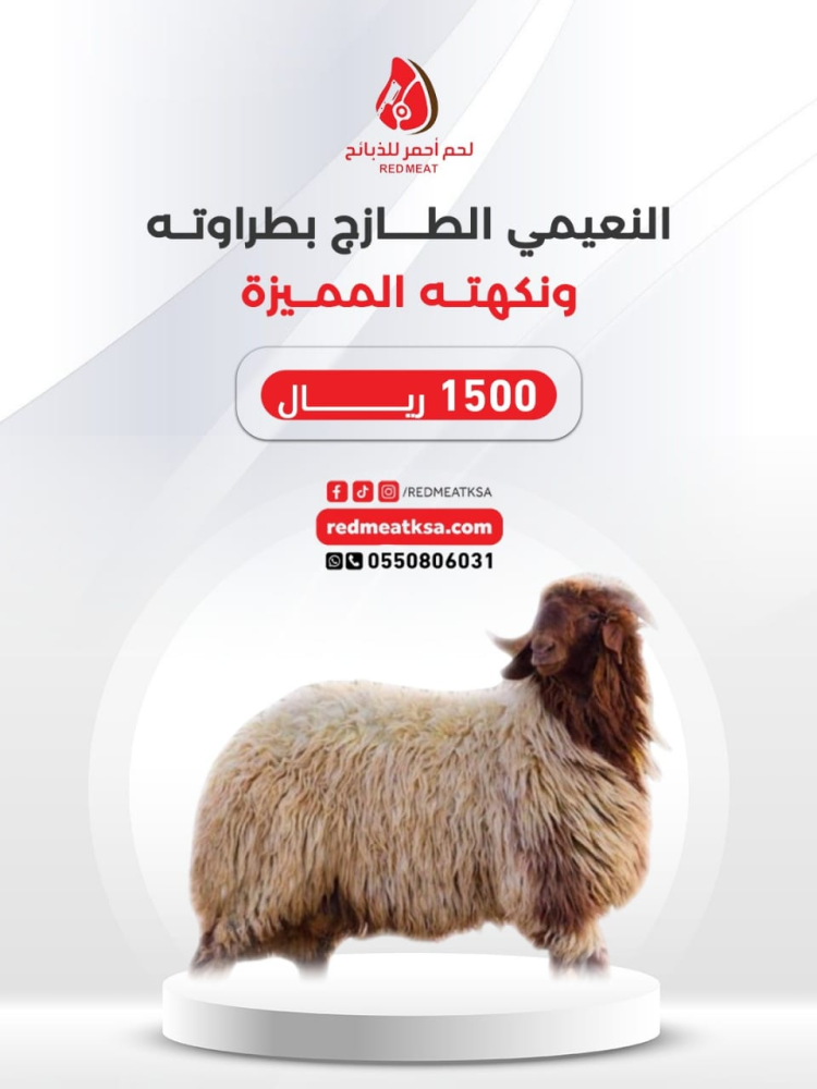 احصل الآن على خروف نعيمي طازج من متجر لحم احمر للذبائح افضل متجر لحوم في السعودية متخصص في بيع لحوم أون لاين وابدأ في تحضير أطباقك المميزة.